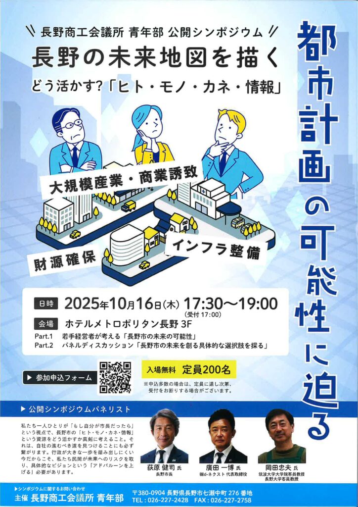10月16日(木)にホテルメトロポリタン長野にて〝長野の未来地図を描く どう活かす?「ヒト・モノ・カネ・情報」”と題しまして、長野商工会議所青年部主催の公開シンポジウムが開催されました。